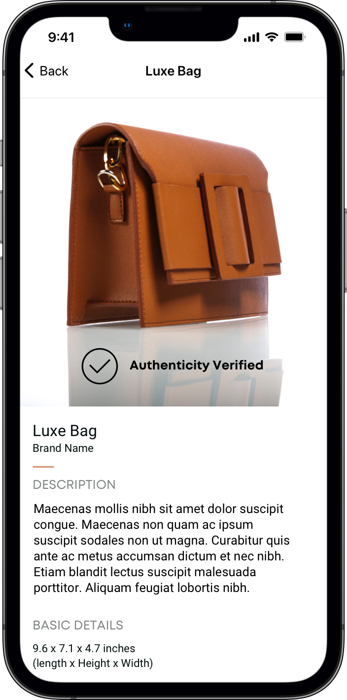 1. Scan the chip to access their Certificate of Authenticity (COA) Digital encrypted in the blockchain. The App is branded with the brand's colours.